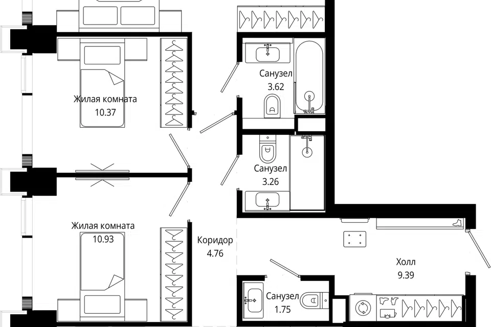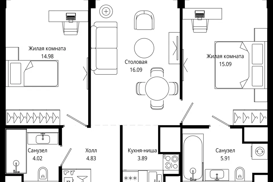 2-комн. кв., 66.3 м², 13/55 этаж