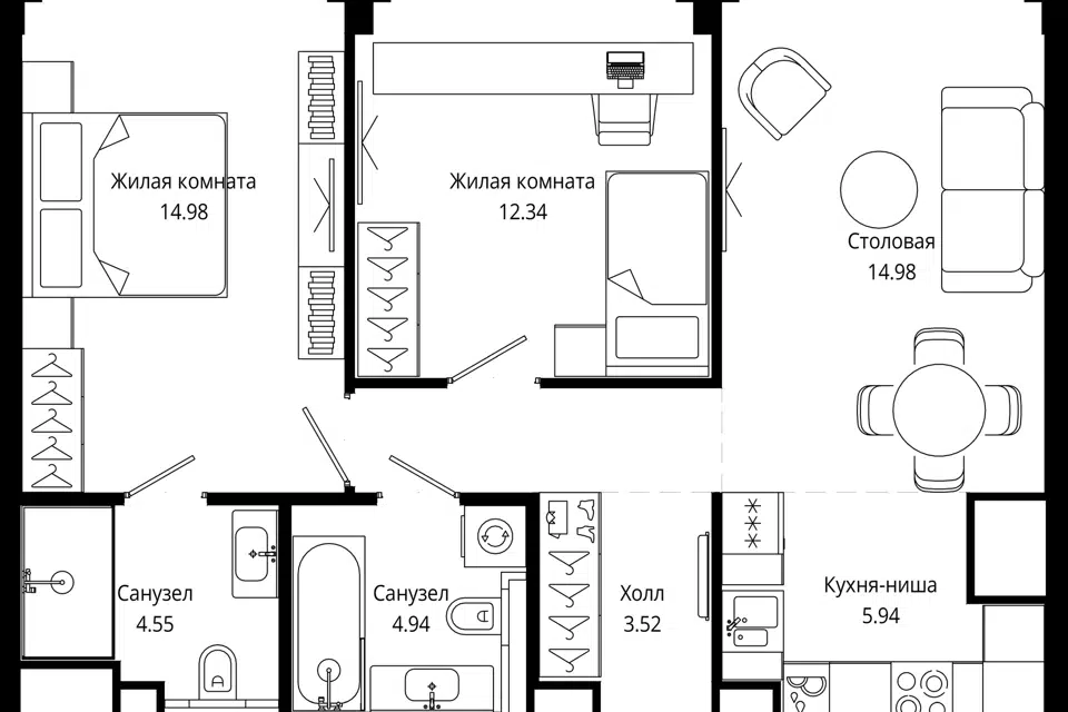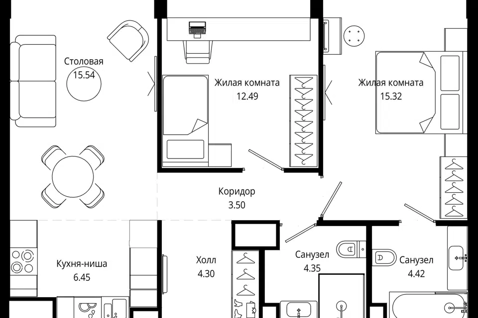 2-комн. кв., 65.8 м², 49/55 этаж