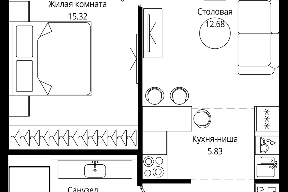 1-комн. кв., 43.4 м², 20/28 этаж