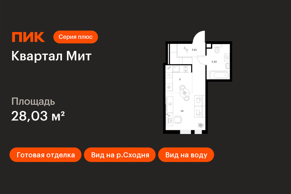Студия, 28.03 м², 19/32 этаж