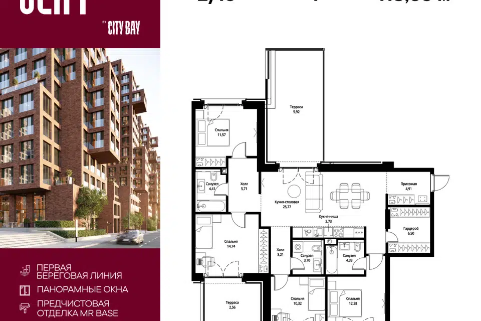 4-комн. кв., 118.66 м², 2/15 этаж