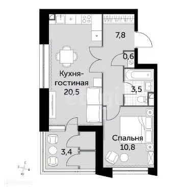 1-комн. кв., 38.9 м², 4/8 этаж
