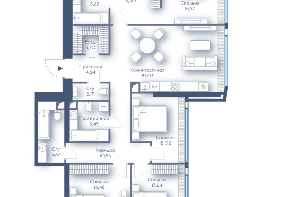 4-комн. кв., 130.07 м², 32/87 этаж