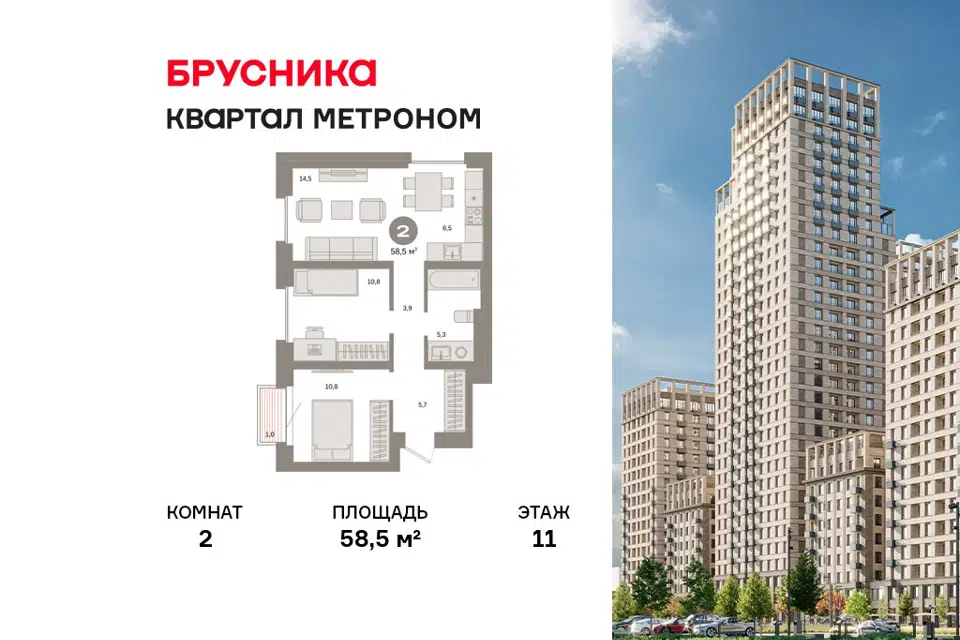 2-комн. кв., 58.5 м², 11/24 этаж