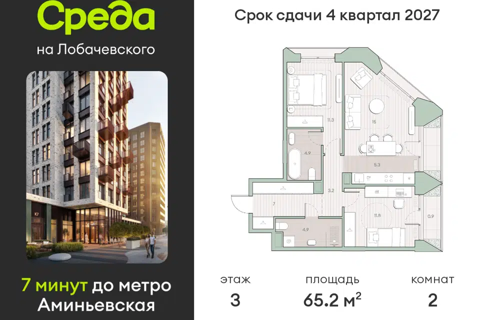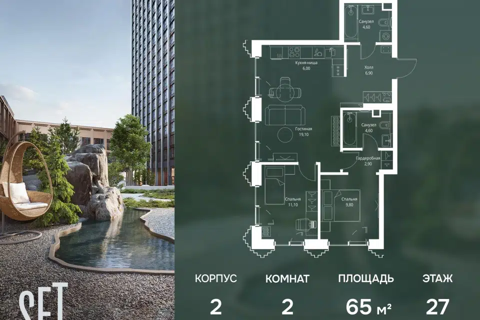 2-комн. кв., 65 м², 27/59 этаж