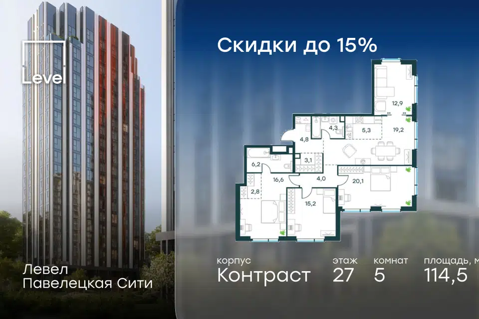 5-комн. кв., 111.4 м², 16/20 этаж