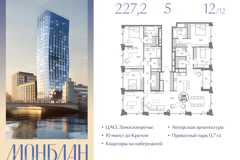5-комн. кв., от 219.3 м², 11-22 этажи