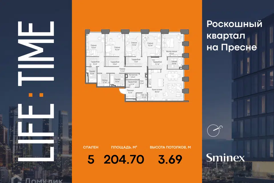 5-комн. кв., от 151.6 м², 8-61 этажи