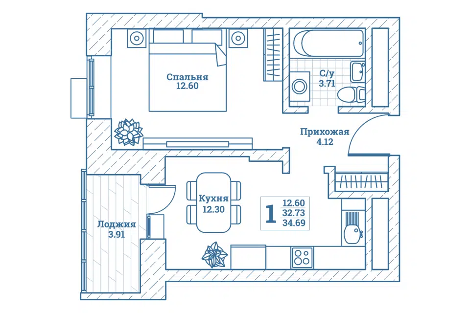 1-комн. кв., 34.7 м², 6/7 этаж