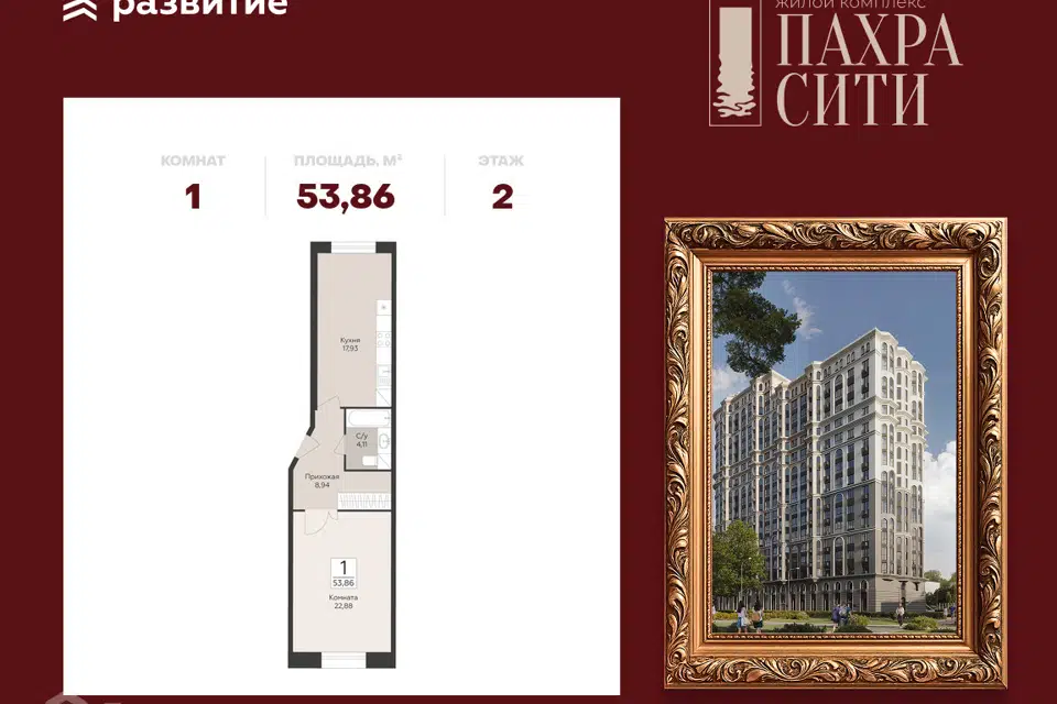 1-комн. кв., 53.86 м², 2/24 этаж