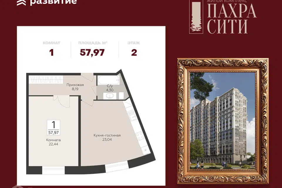 1-комн. кв., 57.97 м², 2/24 этаж