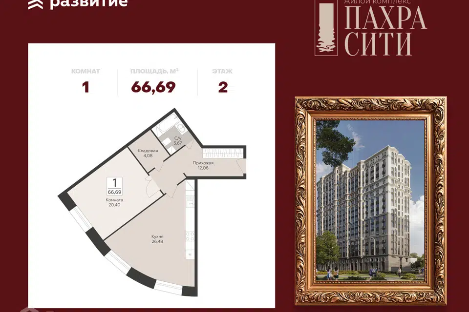 1-комн. кв., 66.69 м², 2/24 этаж