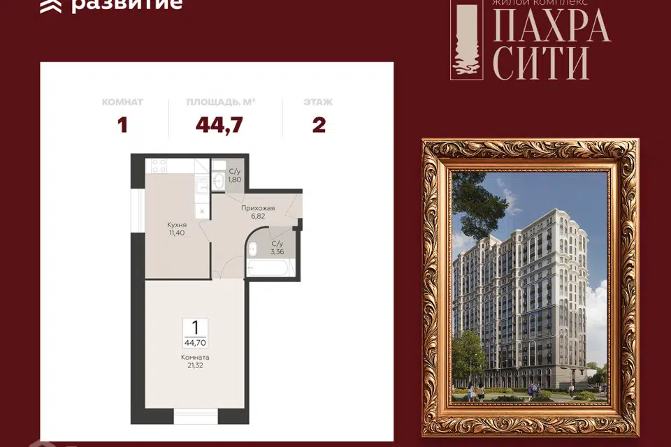 1-комн. кв., 44.7 м², 2/24 этаж