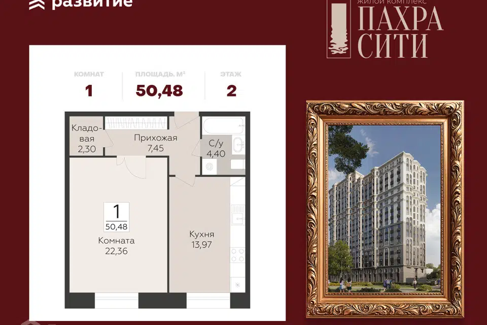 1-комн. кв., 50.48 м², 2/24 этаж