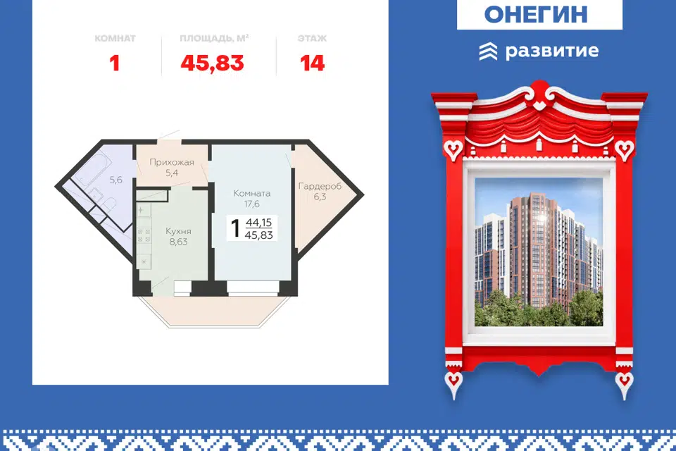 1-комн. кв., 45.83 м², 9/22 этаж
