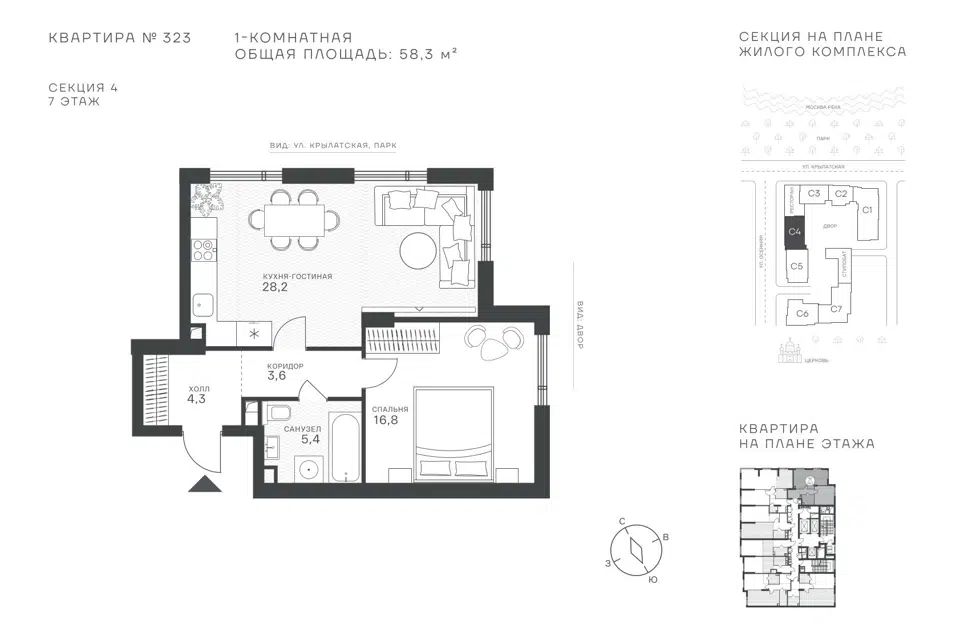 1-комн. кв., 58.3 м², 7/43 этаж