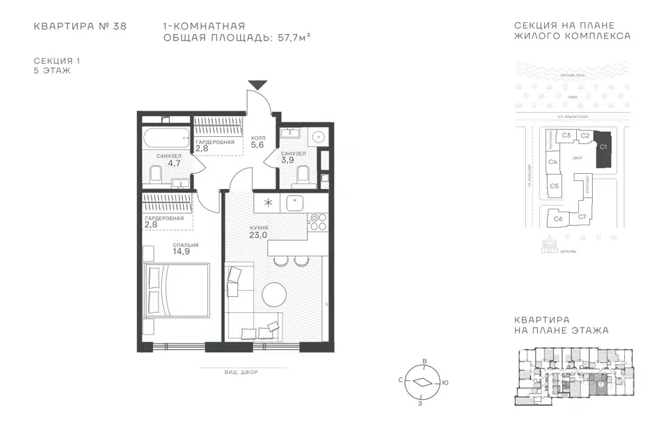 1-комн. кв., 57.7 м², 5/43 этаж