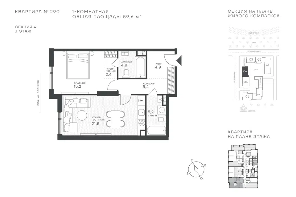 1-комн. кв., 59.6 м², 3/43 этаж