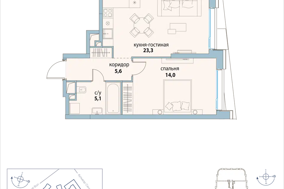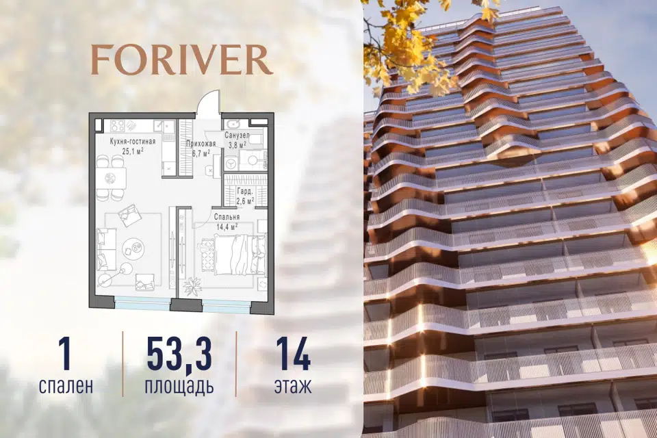 1-комн. кв., 53.3 м², 14/16 этаж