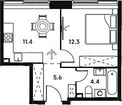 1-комн. кв., 34.4 м², 9/9 этаж