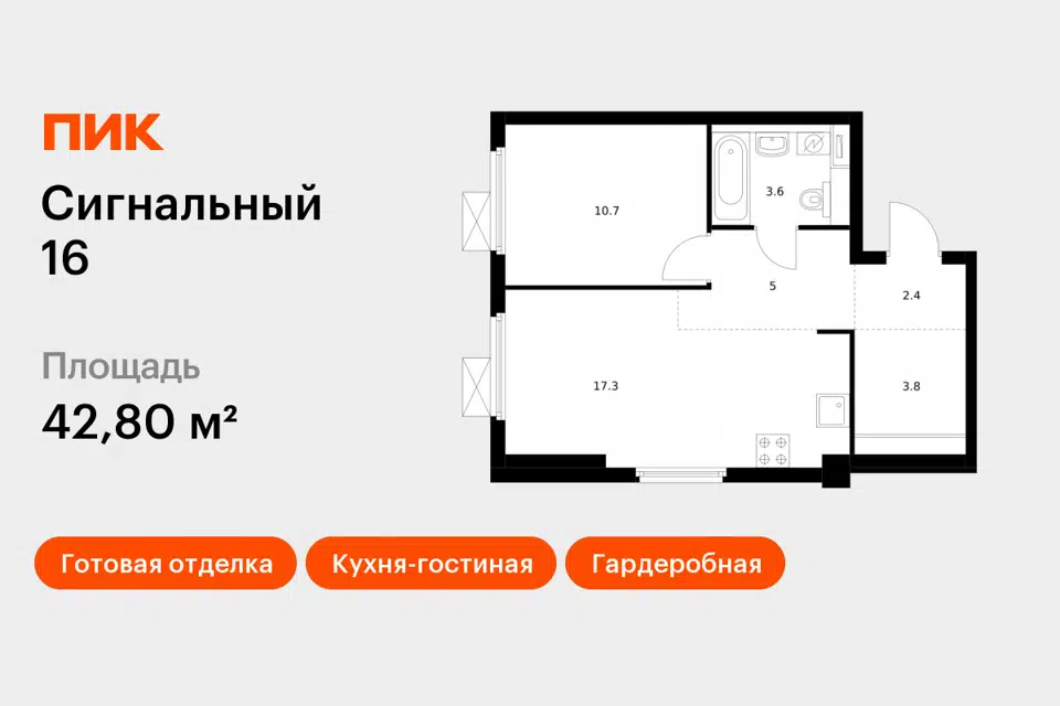 1-комн. кв., 37.8 м², 9/17 этаж