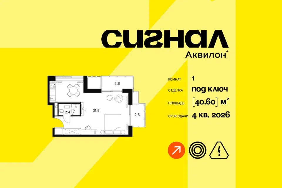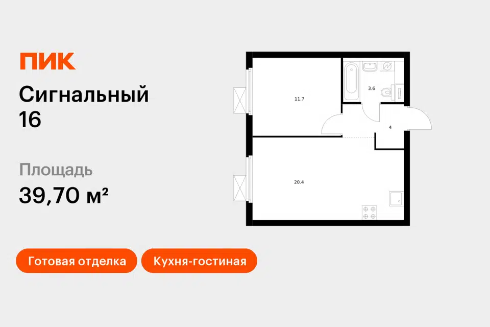 1-комн. кв., 39.9 м², 10/24 этаж