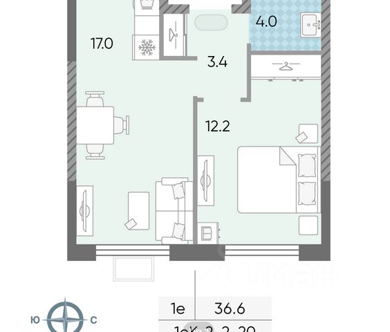 1-комн. кв., 36.8 м², 11/17 этаж