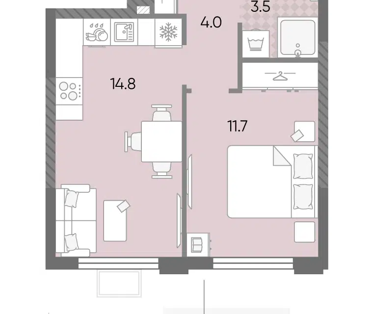 1-комн. кв., 39.2 м², 1/14 этаж