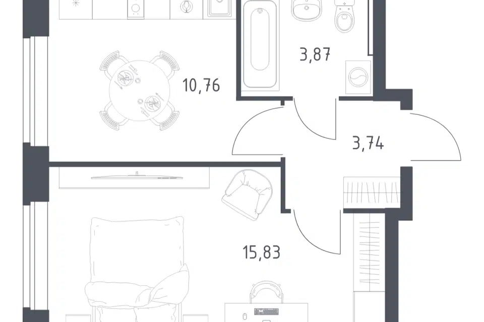 1-комн. кв., 40.79 м², 5/12 этаж