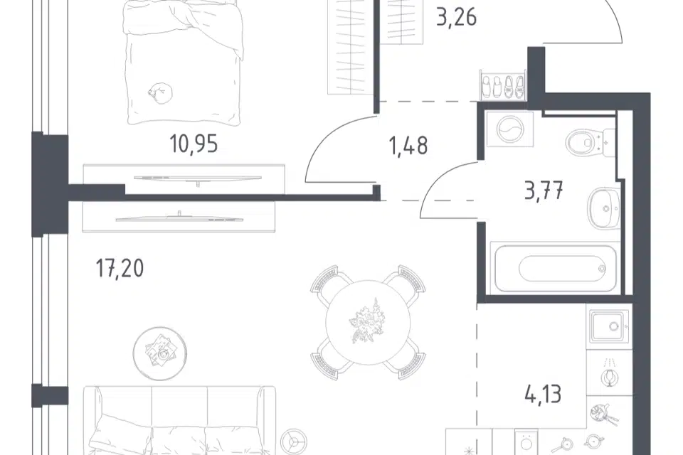 1-комн. кв., 32.1 м², 10/17 этаж