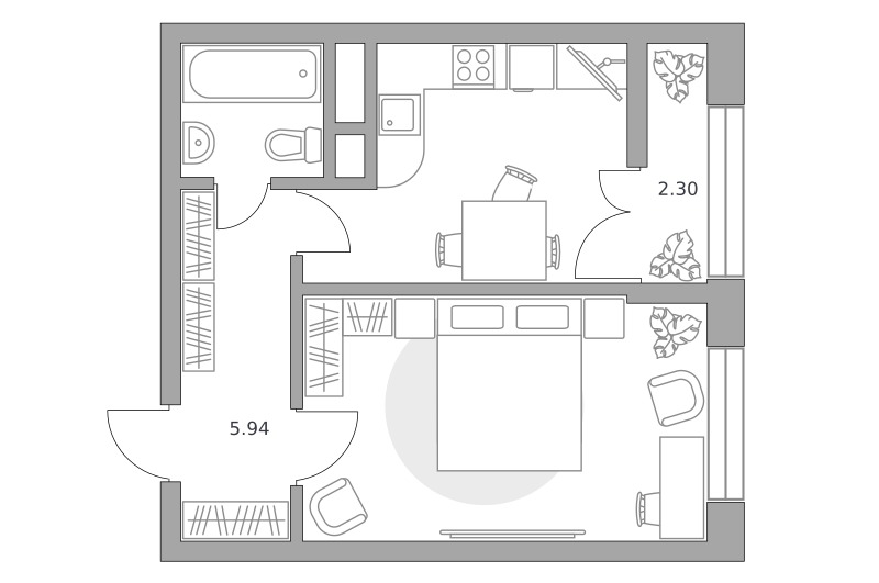 1-комн. кв., 37.6 м², 5/59 этаж