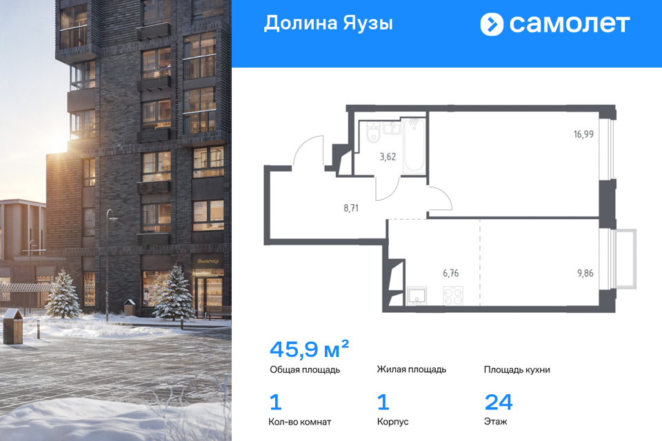 1-комн. кв., от 45.1 м², 5-24 этажи