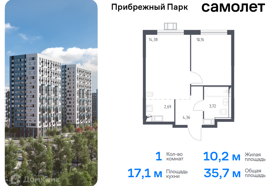 1-комн. кв., от 33.7 м², 3-14 этажи