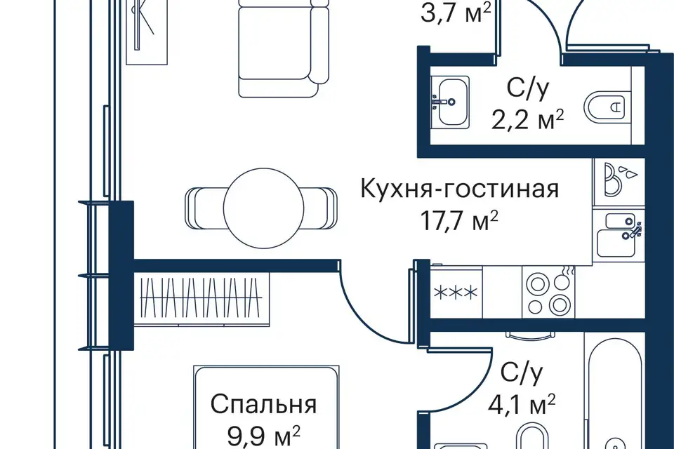 1-комн. кв., от 33.8 м², 5-17 этажи