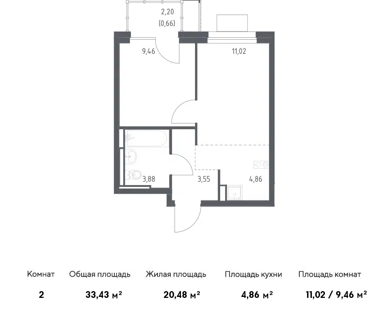 1-комн. кв., от 33.1 м², 5-21 этажи