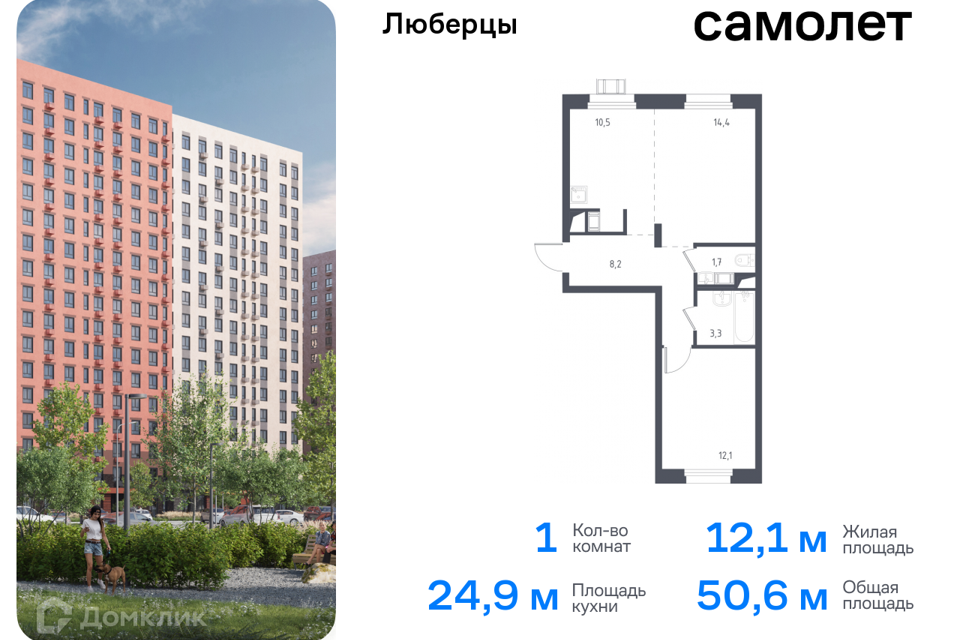 1-комн. кв., от 50.6 м², 6-16 этажи