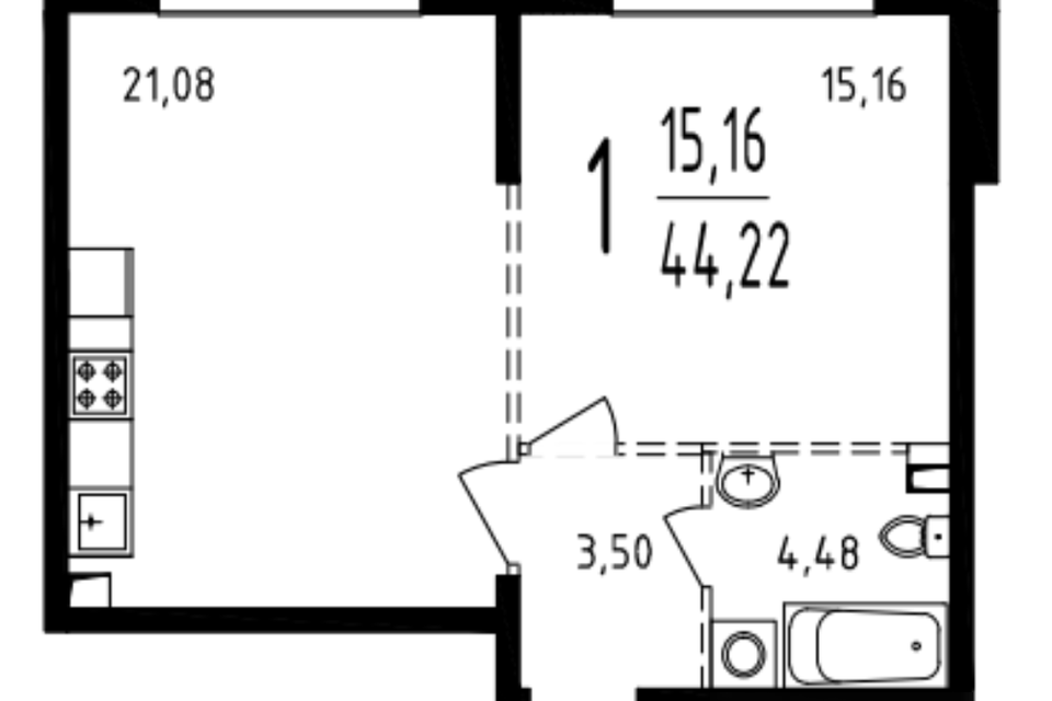1-комн. кв., от 43.8 м², 3-12 этажи