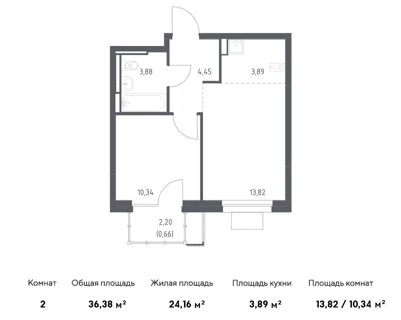1-комн. кв., от 31.87 м², 2-16 этажи
