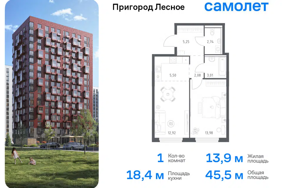 1-комн. кв., от 31.82 м², 3-14 этажи