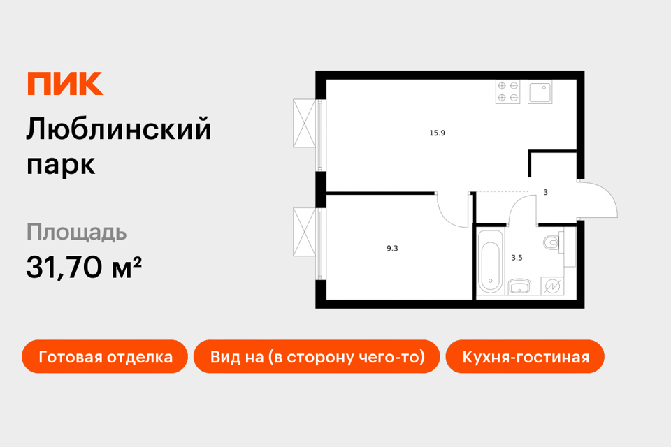 1-комн. кв., от 31.6 м², 9-28 этажи