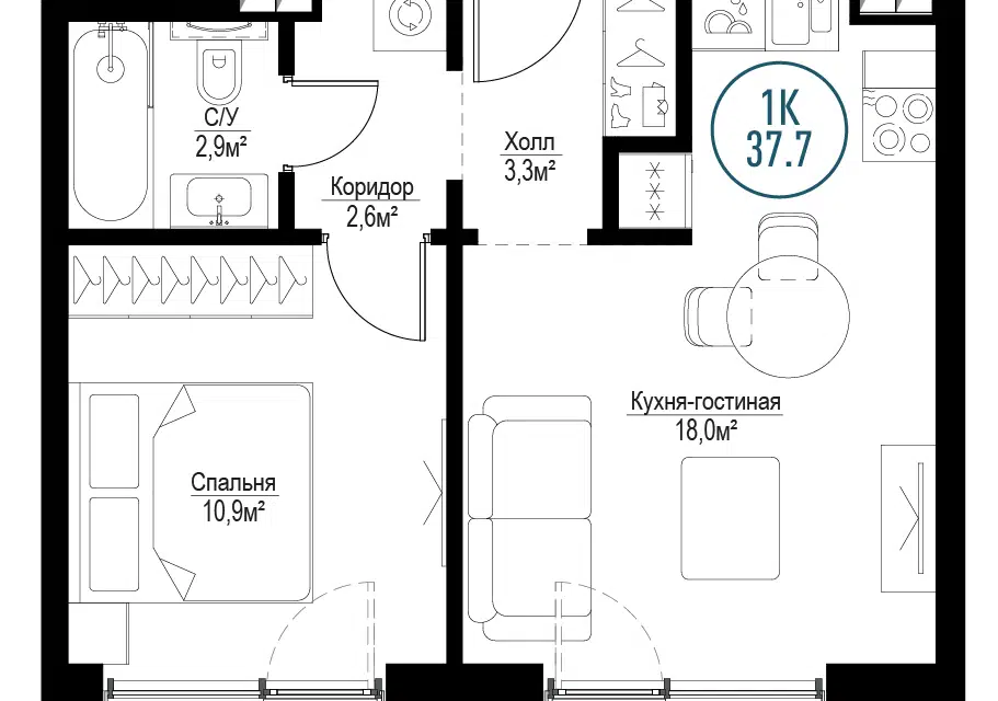 1-комн. кв., от 37.7 м², 17-27 этажи
