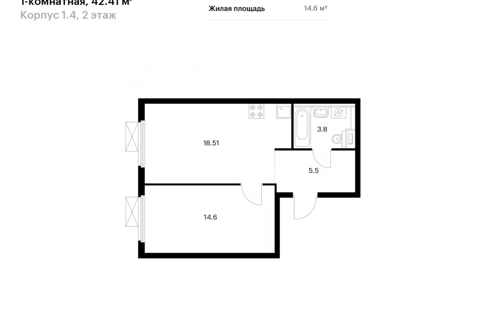 1-комн. кв., от 33.6 м², 2-11 этажи