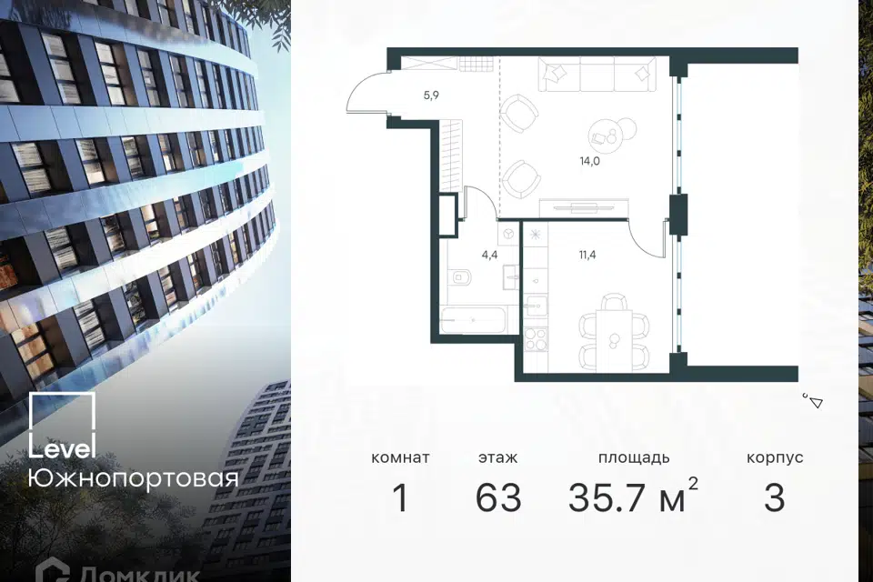 1-комн. кв., от 35.6 м², 16-25 этажи