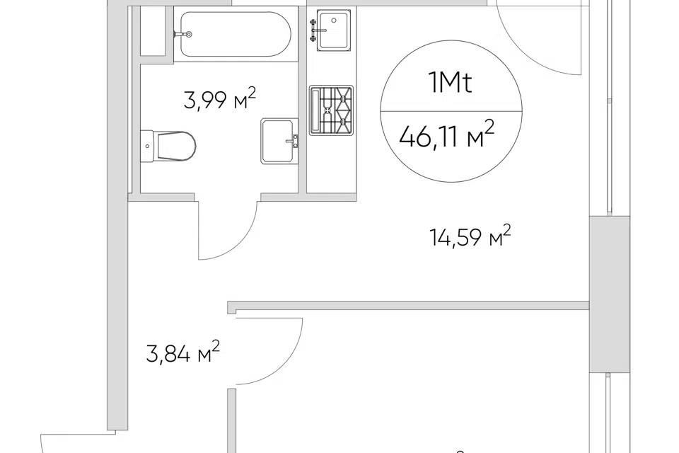 1-комн. кв., 44.56 м², 2/20 этаж