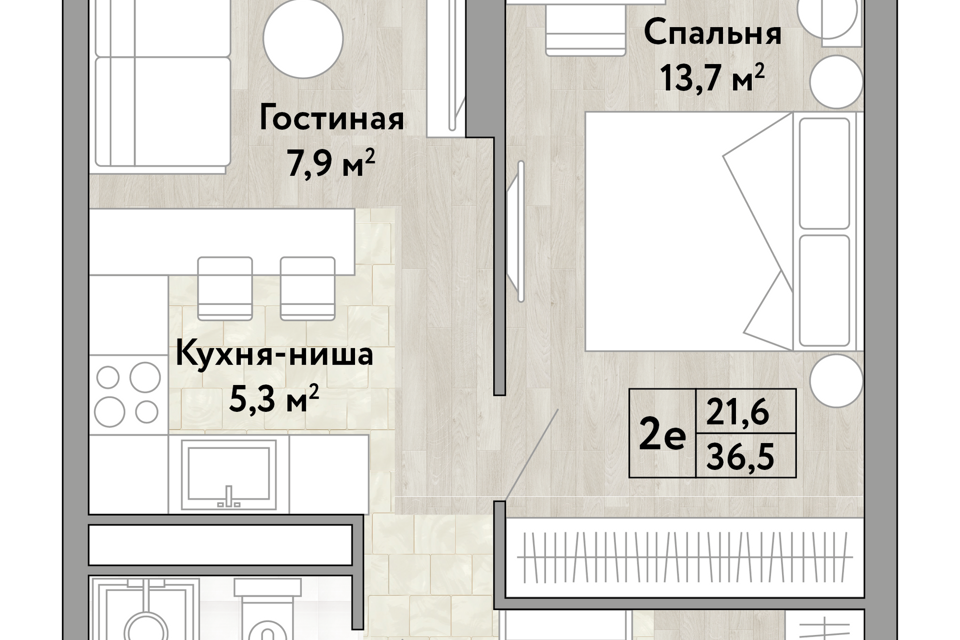 1-комн. кв., 36.5 м², 2/30 этаж