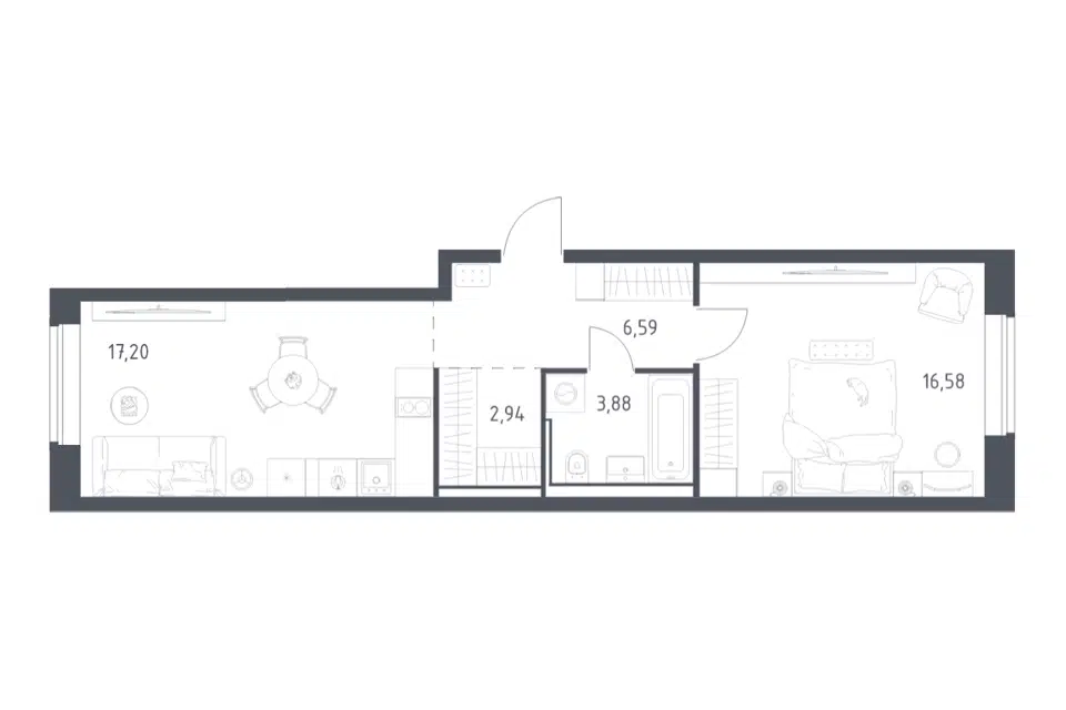 1-комн. кв., от 33.28 м², 6-19 этажи