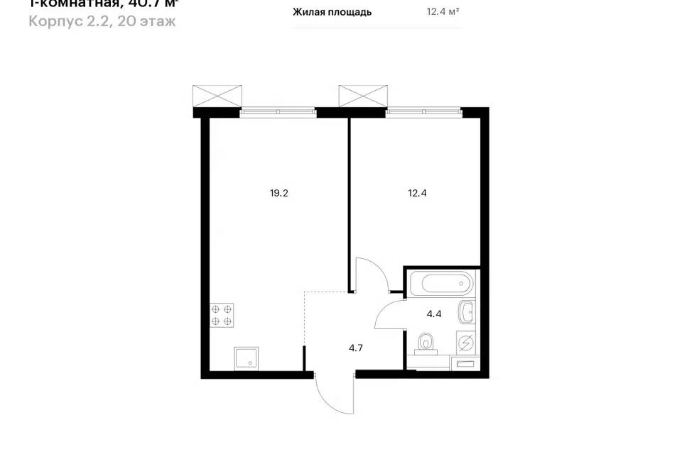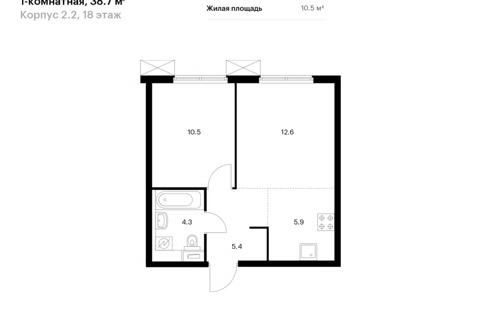 1-комн. кв., от 38.8 м², 10-26 этажи
