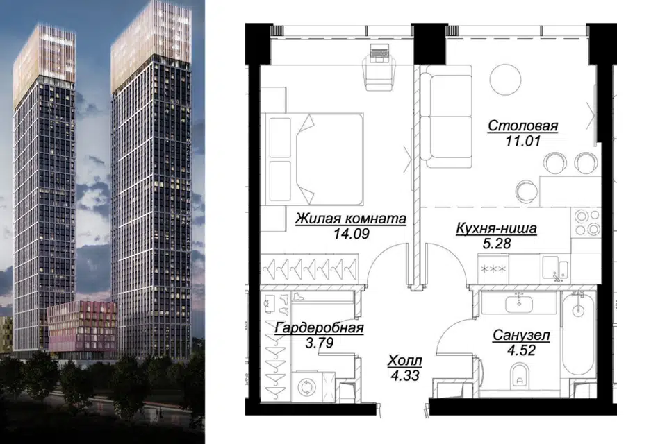 1-комн. кв., от 40.2 м², 9-54 этажи