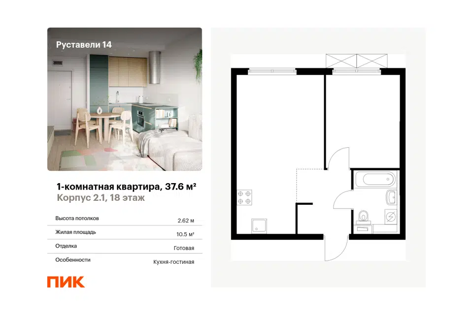 1-комн. кв., от 37.8 м², 21-33 этажи