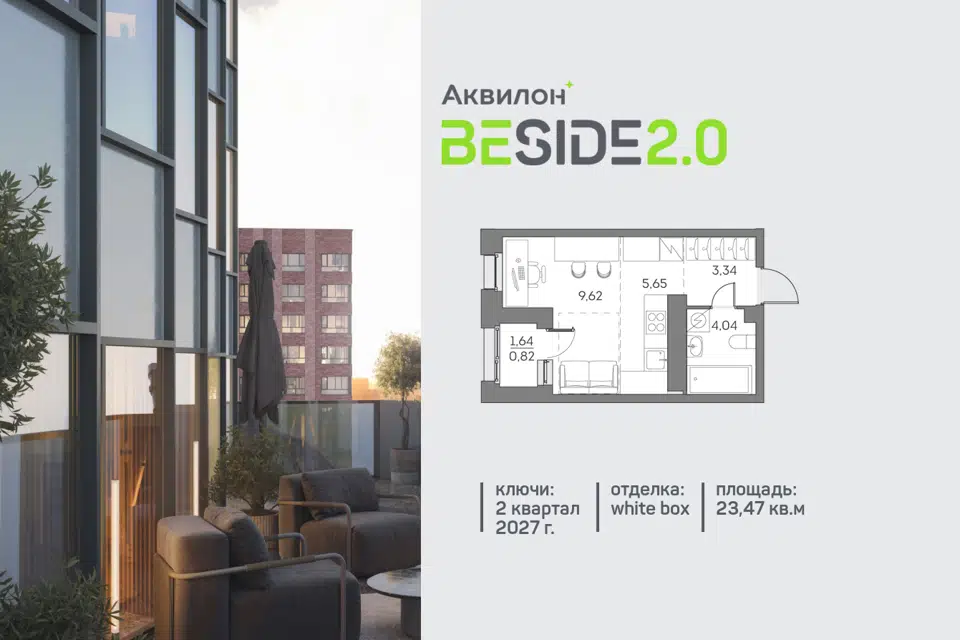 Студия, 23.47 м², 19/28 этаж